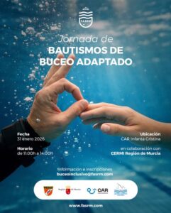 Jornada de 𝐁𝐚𝐮𝐭𝐢𝐬𝐦𝐨𝐬 𝐝𝐞 𝐁𝐮𝐜𝐞𝐨 𝐀𝐝𝐚𝐩𝐭𝐚𝐝𝐨, una actividad muy especial en la que el agua se convierte en un espacio de igualdad, confianza y descubrimiento. Un primer contacto con el buceo pensado para disfrutar, sin barreras y con el acompañamiento adecuado.