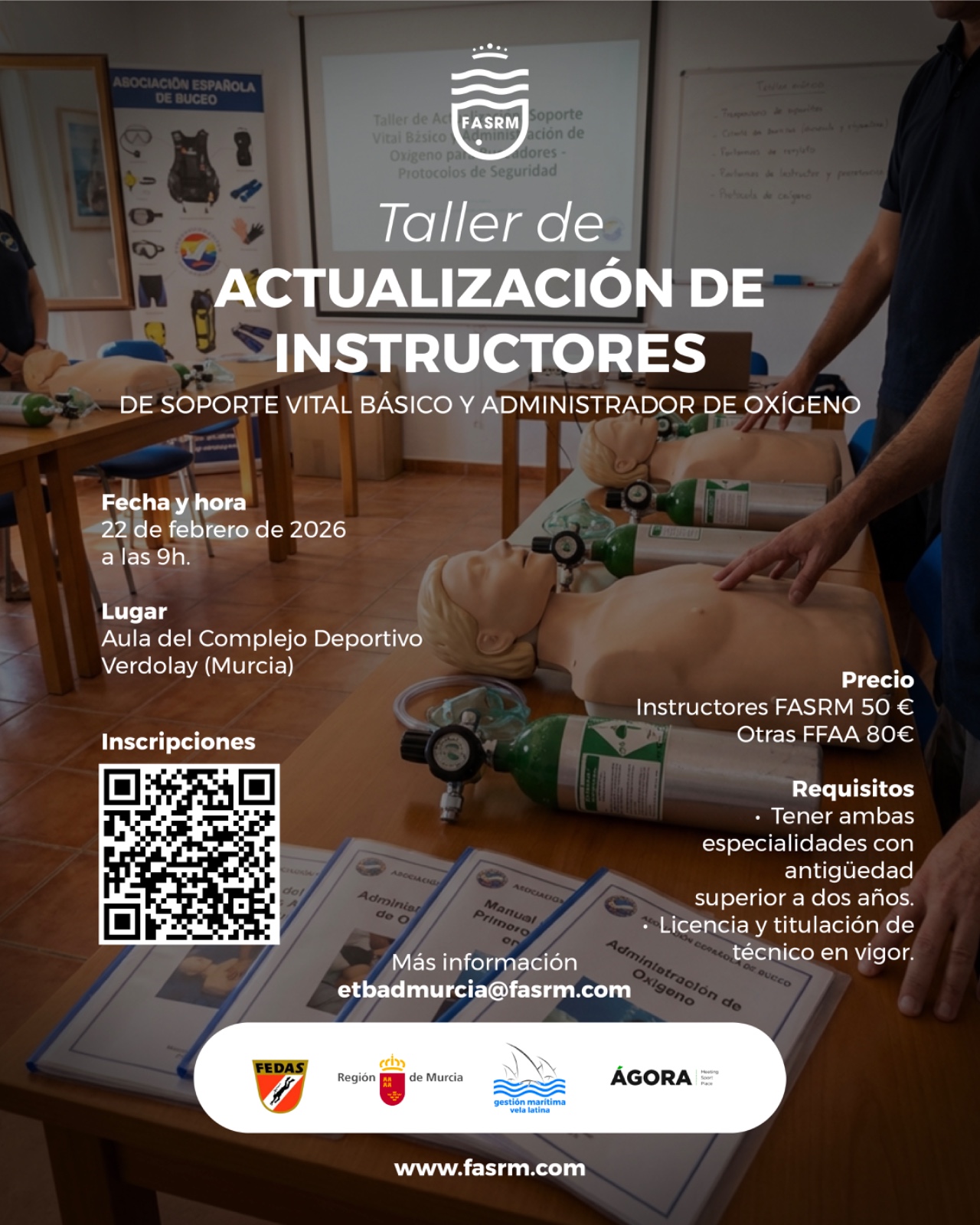En FASRM entendemos que formar a otros implica una gran responsabilidad. Por eso, en línea con lo establecido por FEDAS, el reciclaje en Soporte Vital Básico (SVB) y Administrador de Oxígeno (AO) es obligatorio cada dos años para todos los instructores que deseen mantenerse en activo.